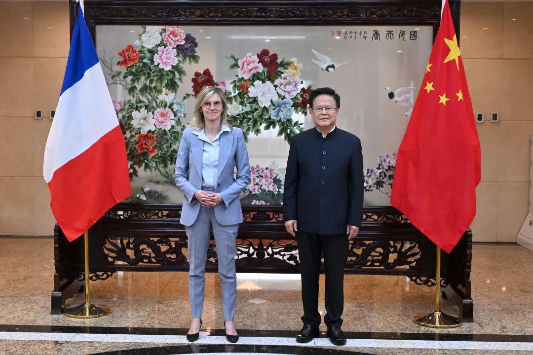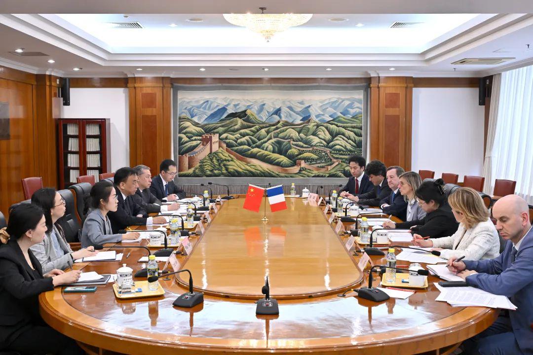 5月30日下午,国家发展改革委主任郑栅洁会见来华访问的法国生态转型、生物多样性、森林、海洋和渔业部帕尼耶-吕纳谢部长一行。