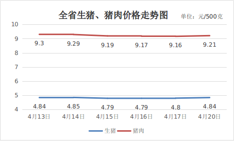 四、粮油价格保持稳定。受稳定的供需关系影响,粮油价格总体保持平稳。4月20日,大米、面粉、豆油(桶装5升)全省平均价格分别为2.8元、2.76元、65.01元,周环比分别为持平、持平、-0.08%,同比涨跌0.72%、-2.13%、-1.86%。