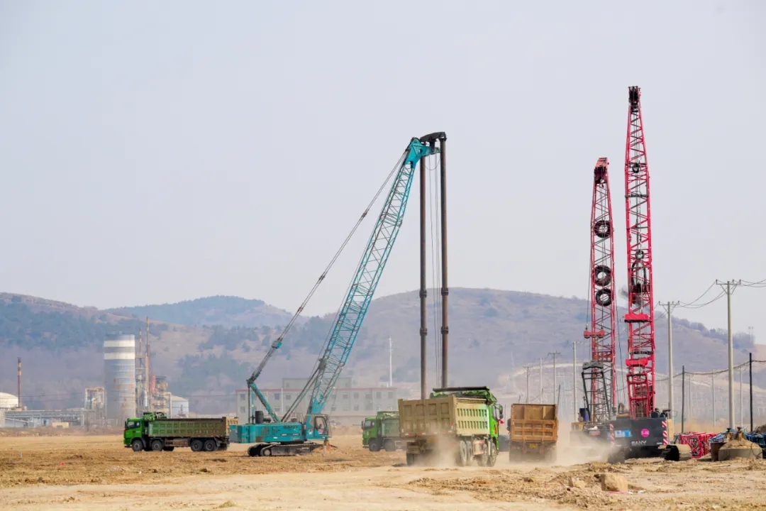 大连市辽宁鼎际得石化新材料项目建设现场。