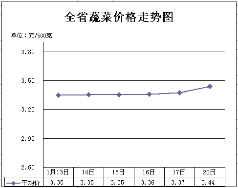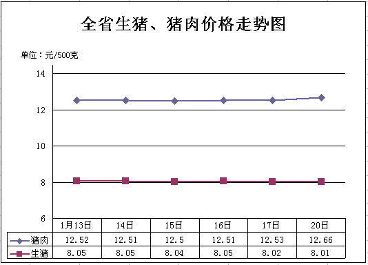 从各地市场巡视情况看,本周(1月13日-1月20日)全省粮油、农副和蔬菜产品供应充分满足市场需求,价格波动范围不大。主要农副产品中粮油价格稳定,猪肉价格小幅上涨,牛、羊肉价格微幅下跌,鸡蛋价格微幅上涨,牛奶价格保持稳定,蔬菜价格小幅上涨。