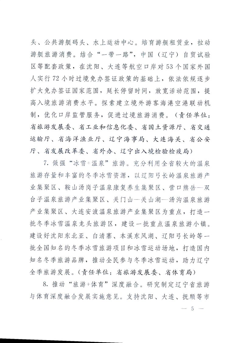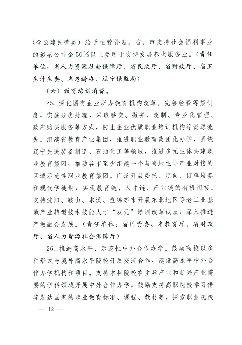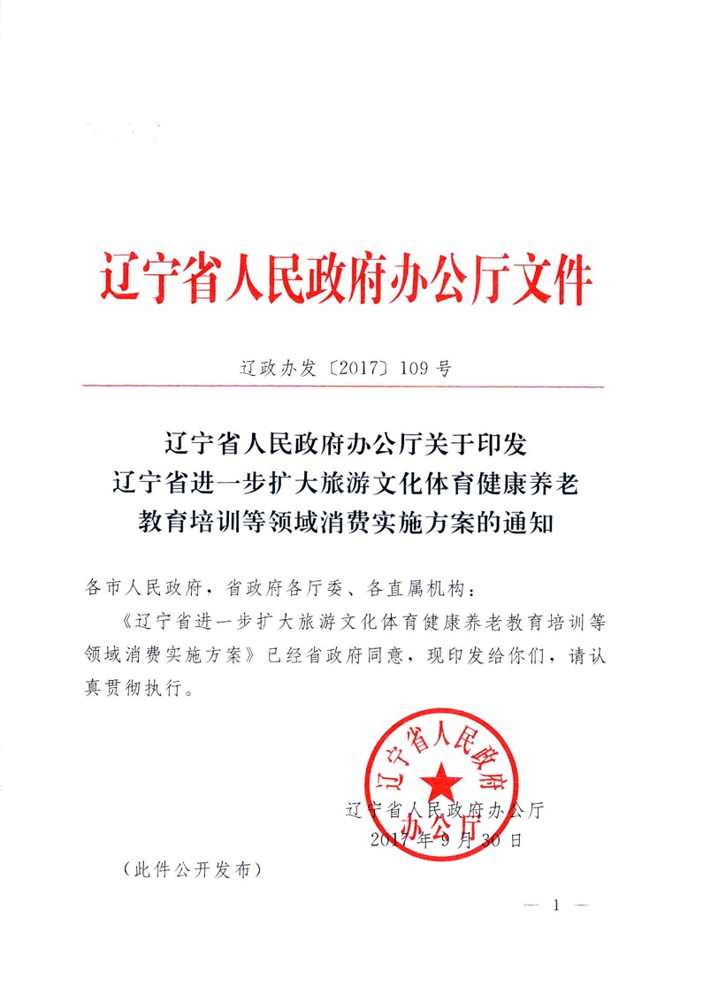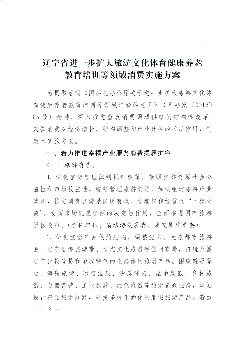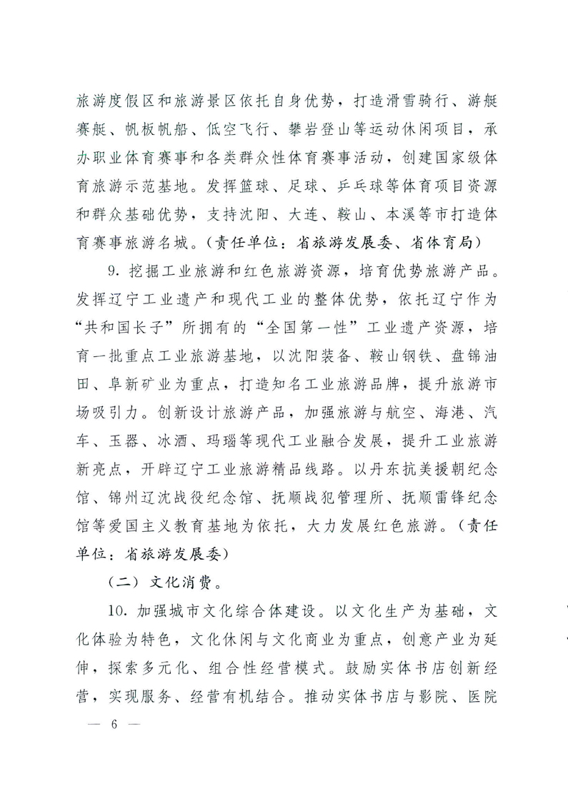 辽宁省人民政府办公厅关于印发辽宁省进一步扩大旅游文化体育健康养老教育培训等领域消费实施方案的通知