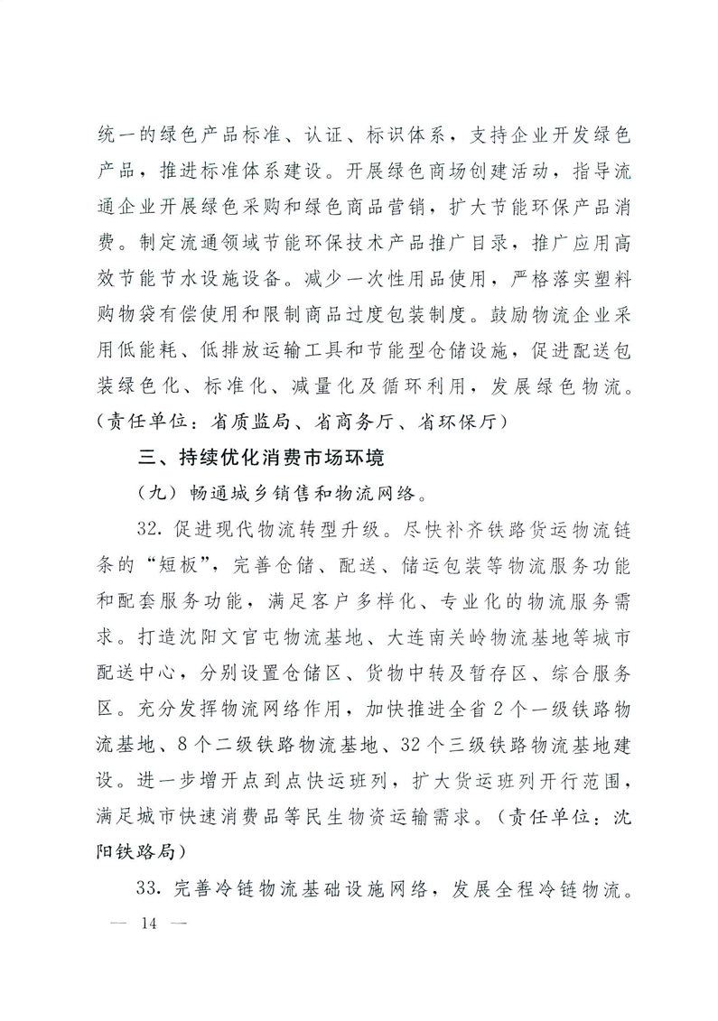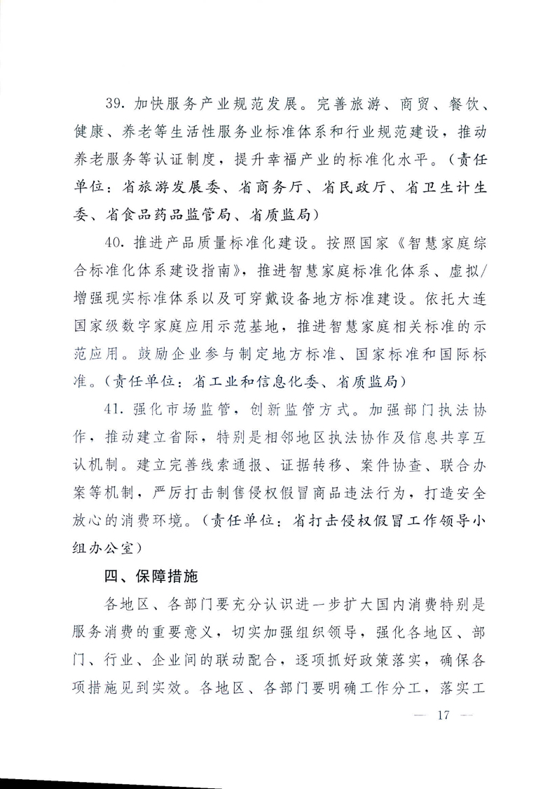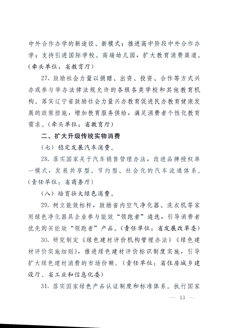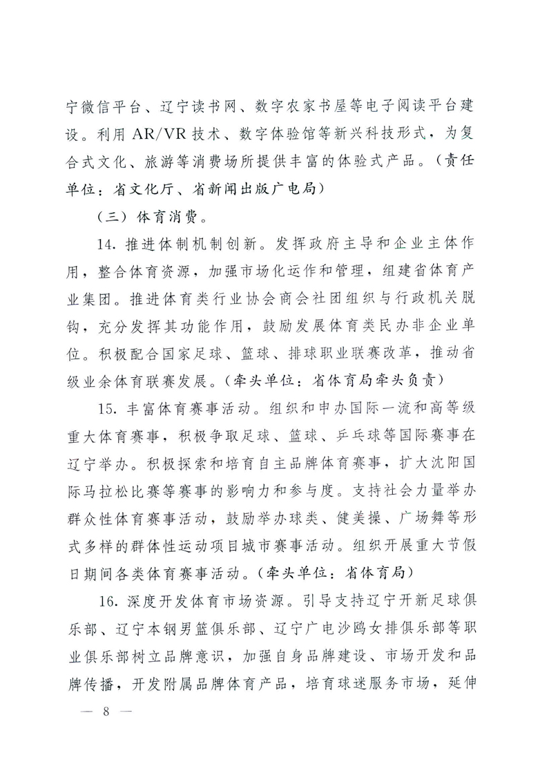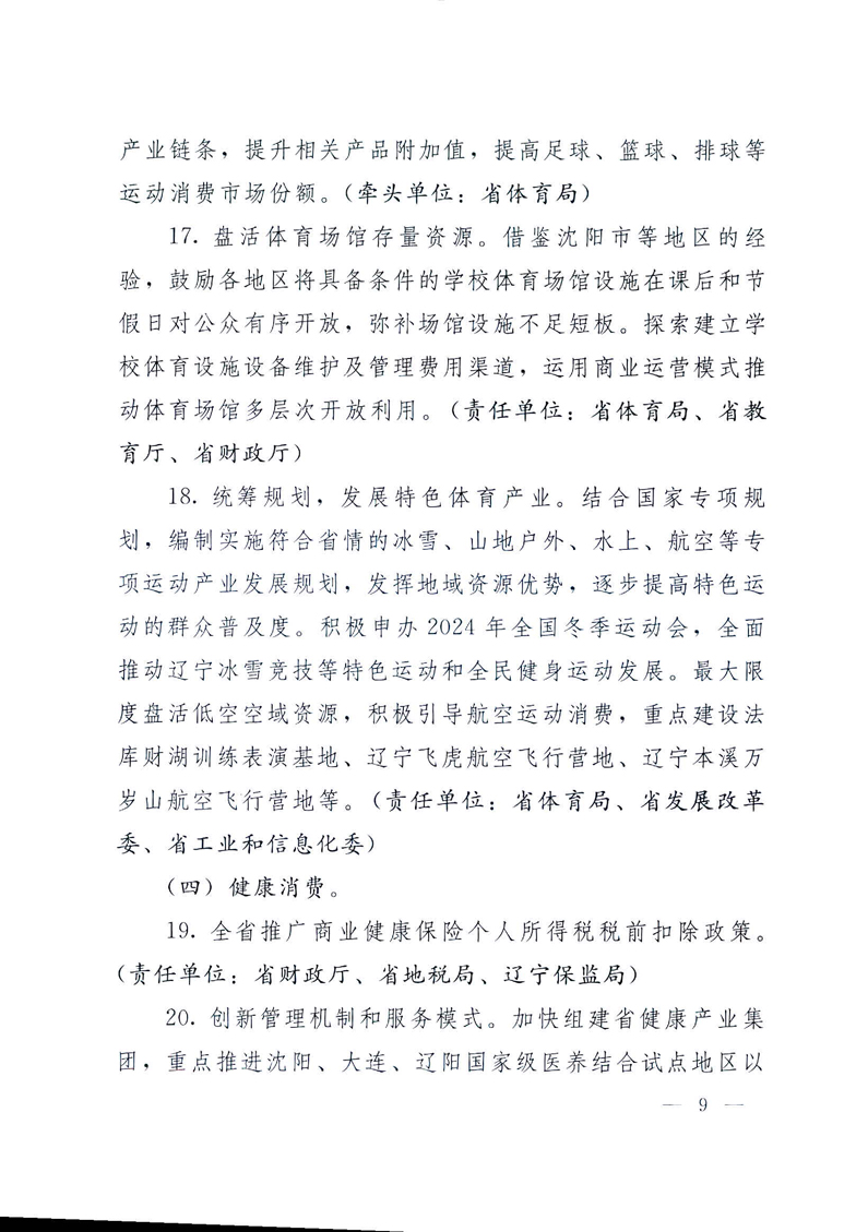 辽宁省人民政府办公厅关于印发辽宁省进一步扩大旅游文化体育健康养老教育培训等领域消费实施方案的通知